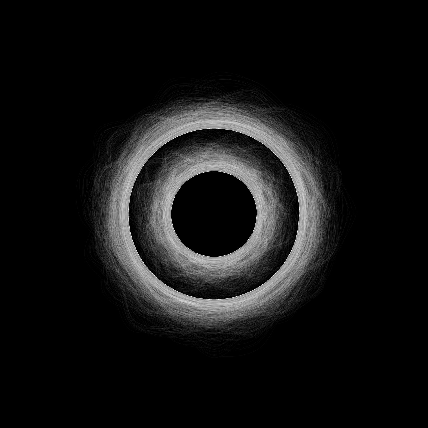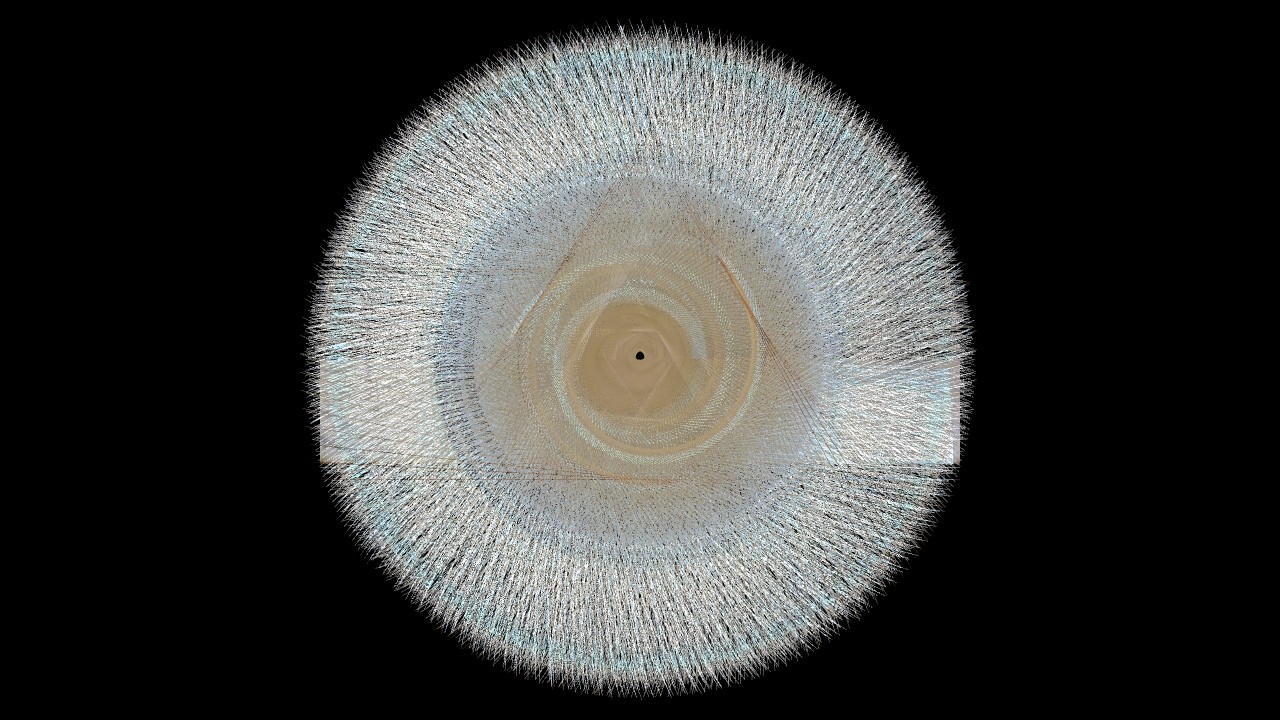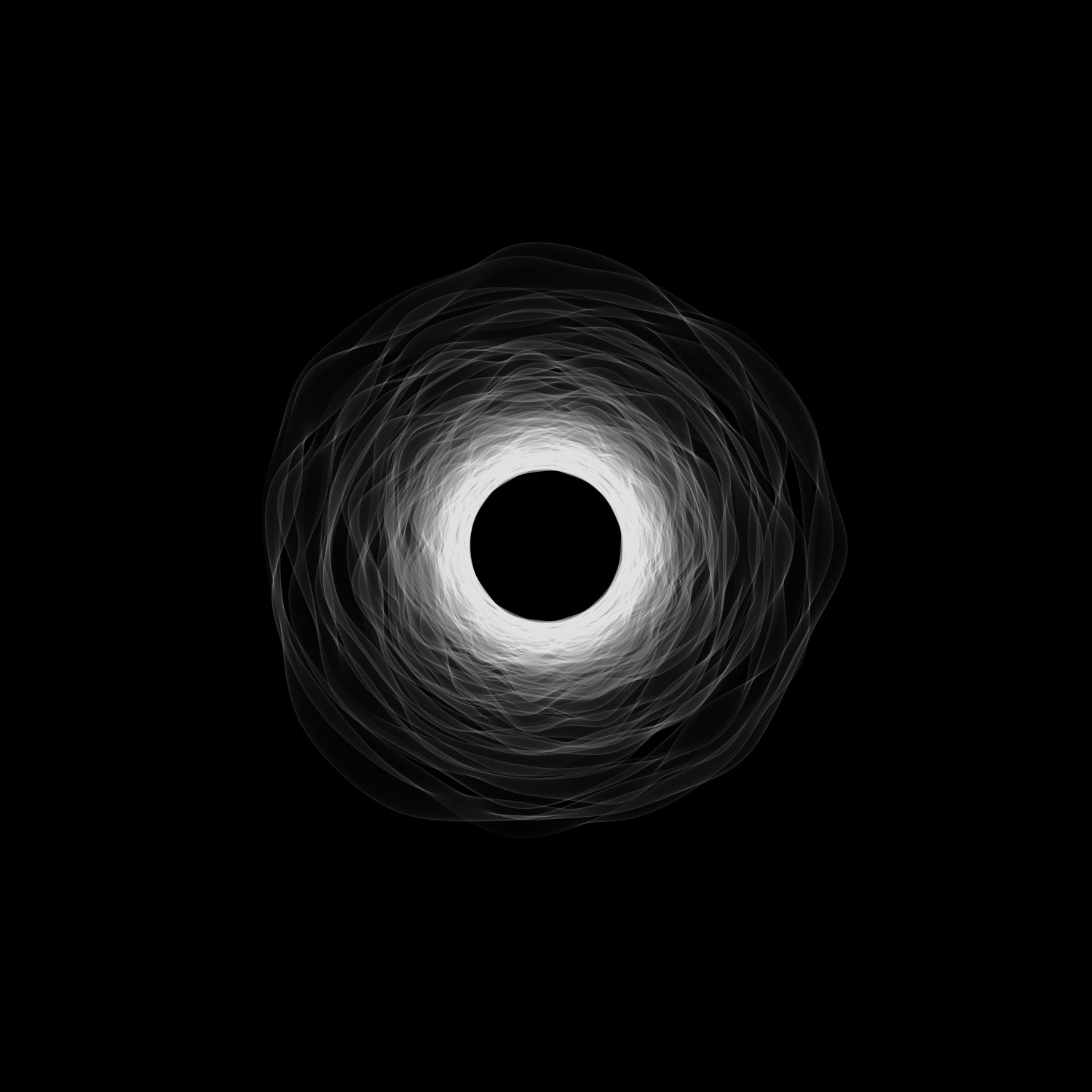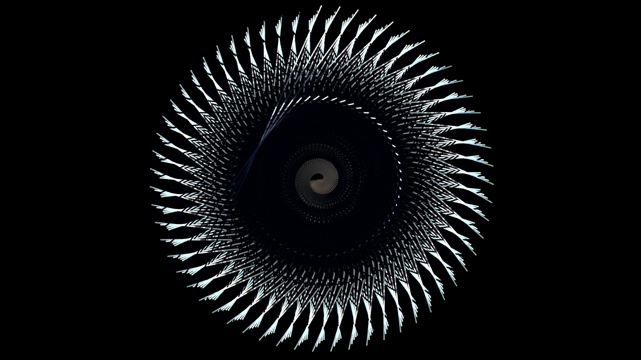 Polar opposite of the circle, the line, finite and directional primary shape, also plays an important role in the creative process. Used as a spirograph, it adds sensory qualities to the glyphs. When undisturbed, the addition of lines becomes smooth, presenting more readable hints of the creator’s context. Agitated, all visual landmarks are erased, anonymising the glyph, showing a harsher texture – adding to the visuals a near-synesthetic feeling of physicality.