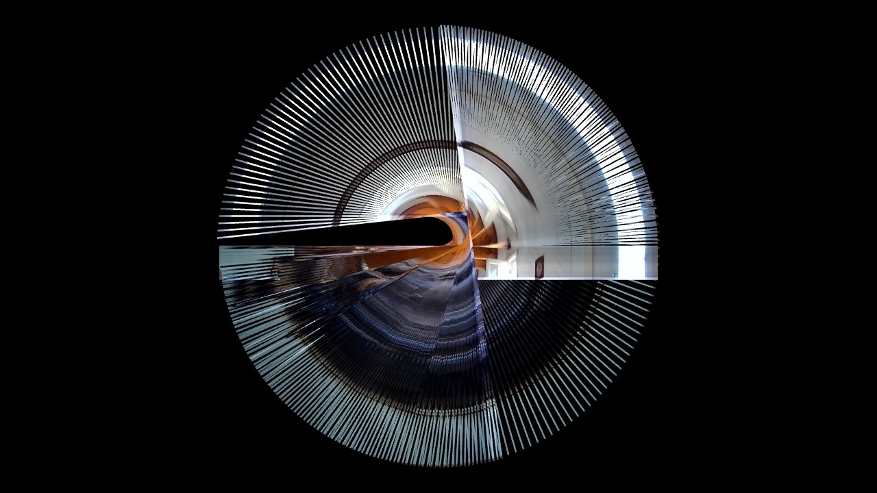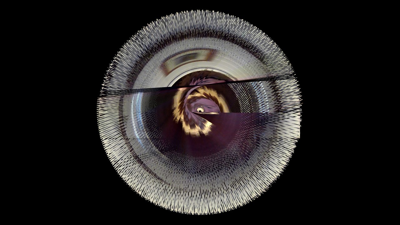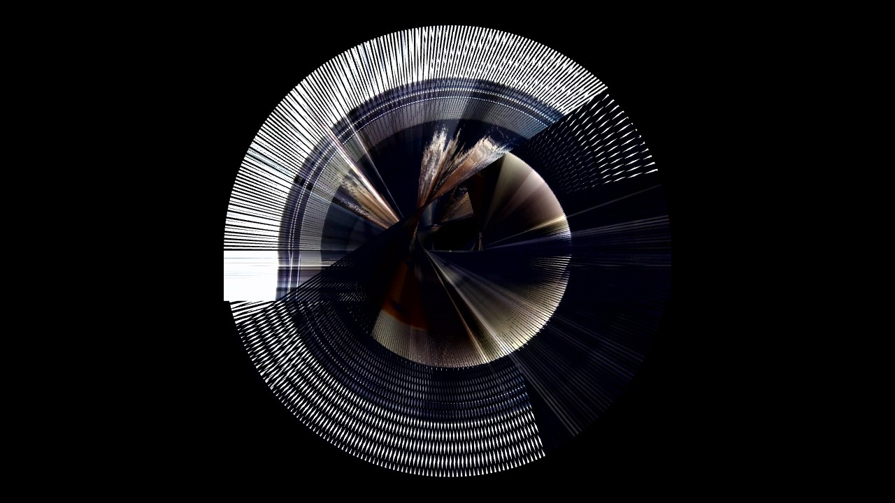 I added a touch of computer vision. Not too much, partly due to my own lack of literacy when it comes to computer science, partly because I wanted to keep a balance of the inputs of the Self and of the Machine. Using openFrameworks and ofOpenCV, I had the program keep tracks of my movements, of its intensity and its activity, and transcribe it in rotations. I made a spirograph of the slit-scan, controlled by the movements perceived, offering an intimate performance of my anxiety only to the eye of my camera. I made a few arbitrary aesthetic choices, such as the width of the line and the rotation’s steps, because language is, in a way, also made of a few arbitrary choices. The Machine drew the deformed vision of myself, choreographed in real time by my own agitation, and I felt more grounded – a new mirror, showing me a new Self. I became a direct agent of creation; I controlled the narrative, my narrative.