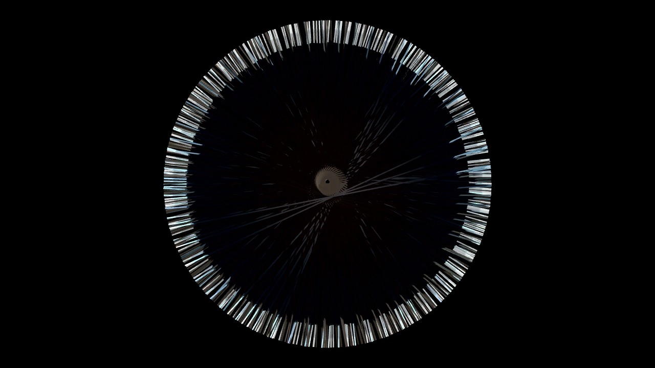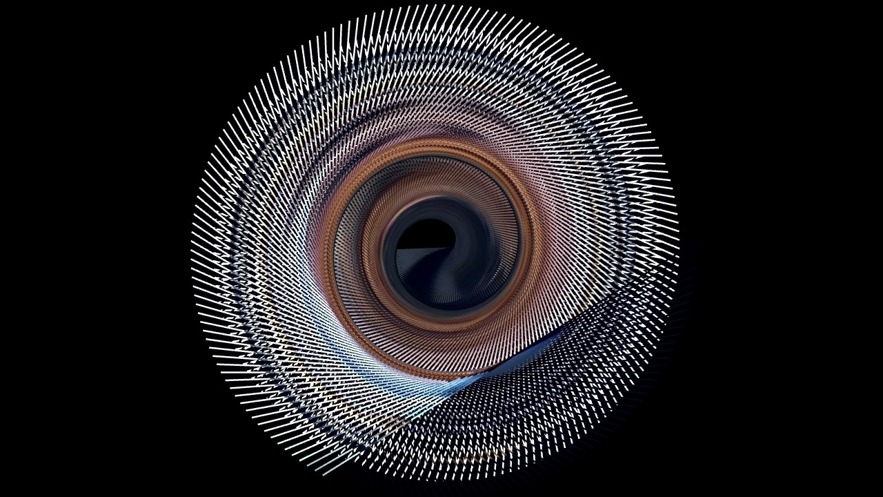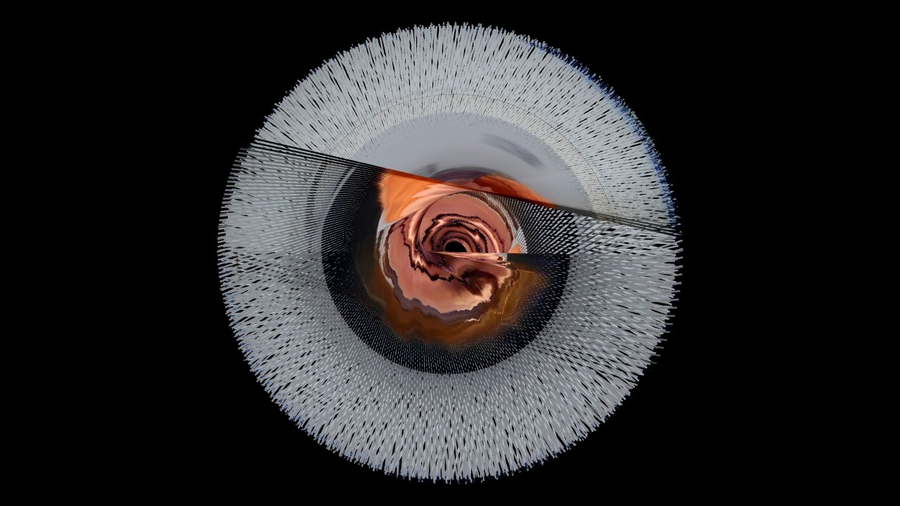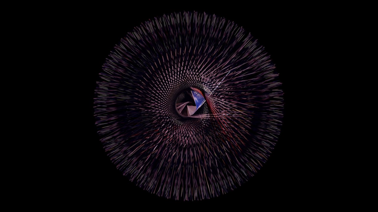 I added a touch of computer vision. Not too much, partly due to my own lack of literacy when it comes to computer science, partly because I wanted to keep a balance of the inputs of the Self and of the Machine. Using openFrameworks and ofOpenCV, I had the program keep tracks of my movements, of its intensity and its activity, and transcribe it in rotations. I made a spirograph of the slit-scan, controlled by the movements perceived, offering an intimate performance of my anxiety only to the eye of my camera. I made a few arbitrary aesthetic choices, such as the width of the line and the rotation’s steps, because language is, in a way, also made of a few arbitrary choices. The Machine drew the deformed vision of myself, choreographed in real time by my own agitation, and I felt more grounded – a new mirror, showing me a new Self. I became a direct agent of creation; I controlled the narrative, my narrative.
