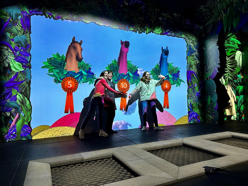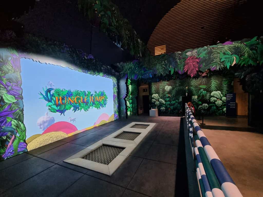 Trampoline-controlled obstacle race game, created for the Saut Hermès 2023.