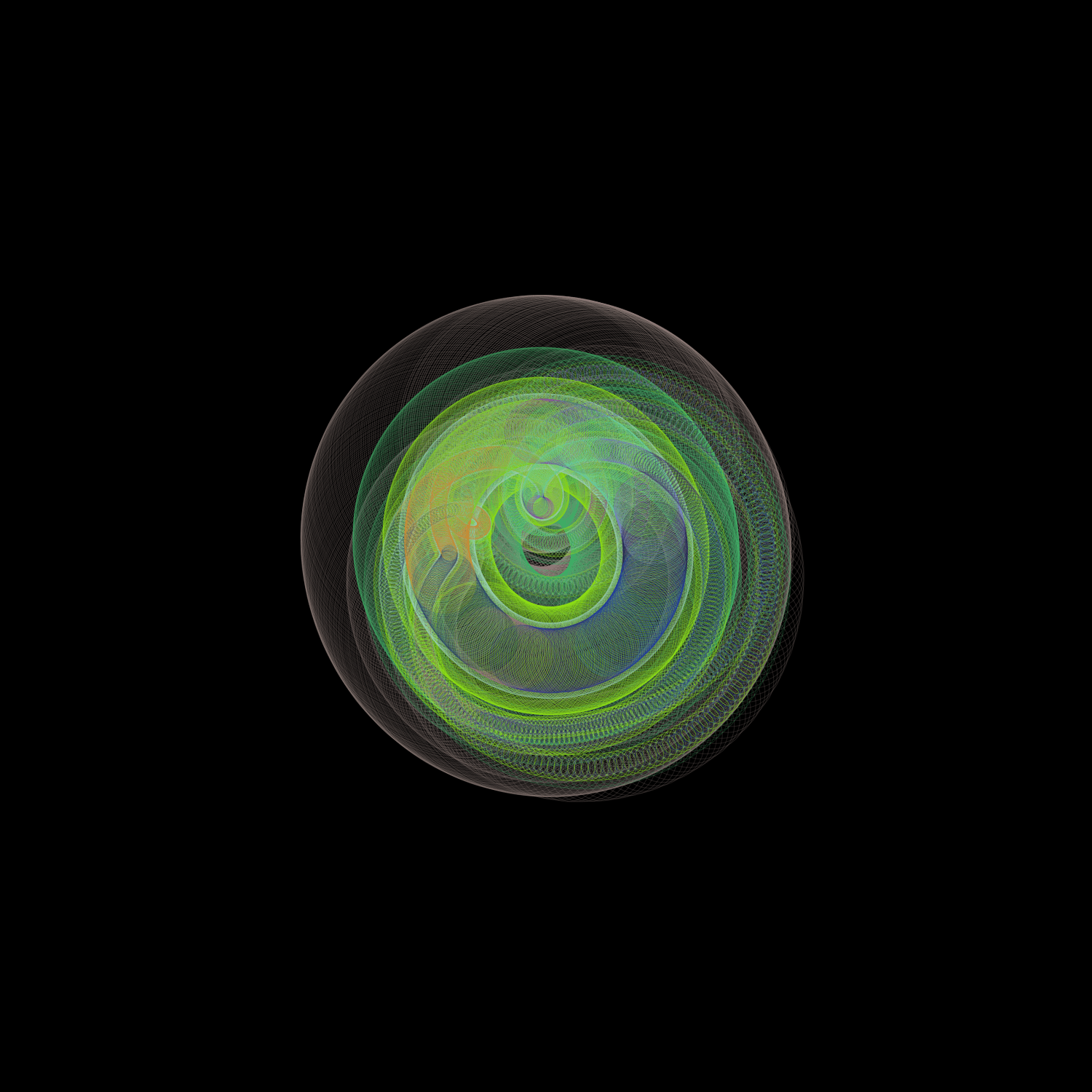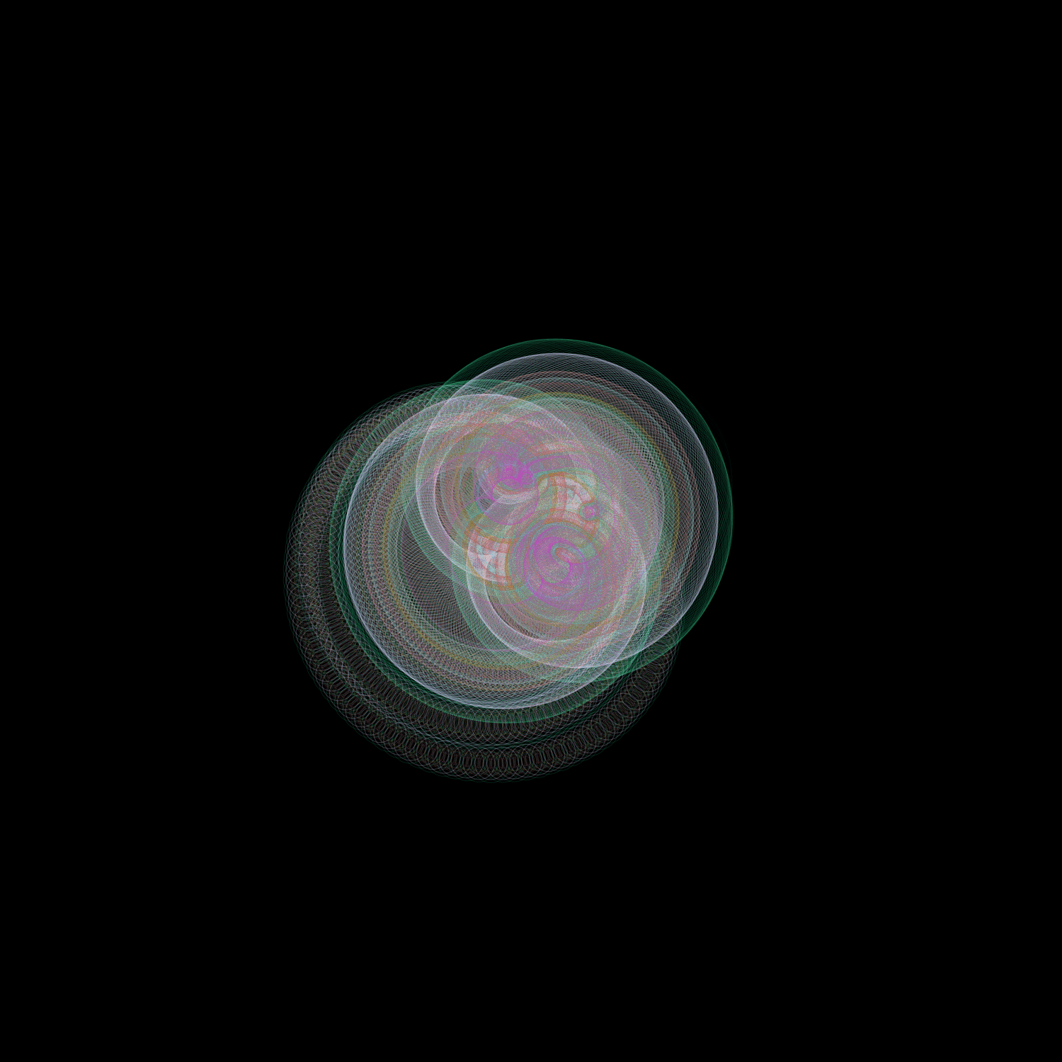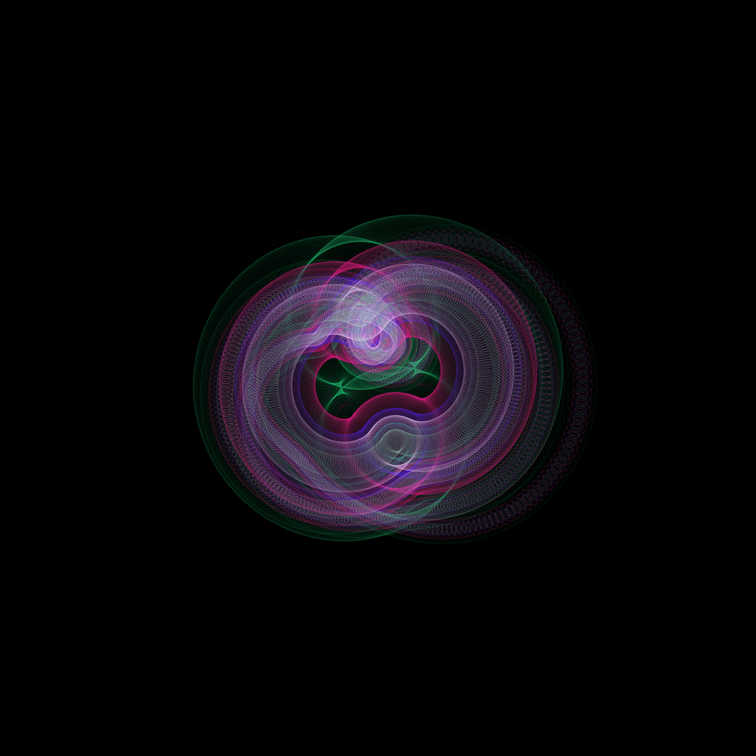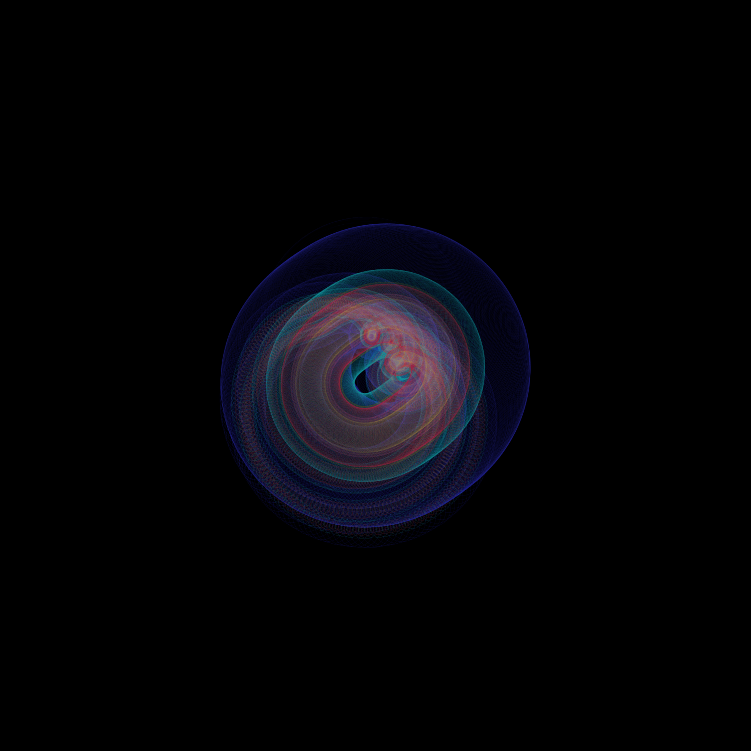 I love spirographs; there is something incredibly soothing and elegant about them. I decided to revist an old solar system sketch just to see what sort of incredible shapes and forms could come from it, and then fell in love all over again. It's simple, and it works well. How many times can you run a program before it starts feeling redundant? The answer's in the shape.