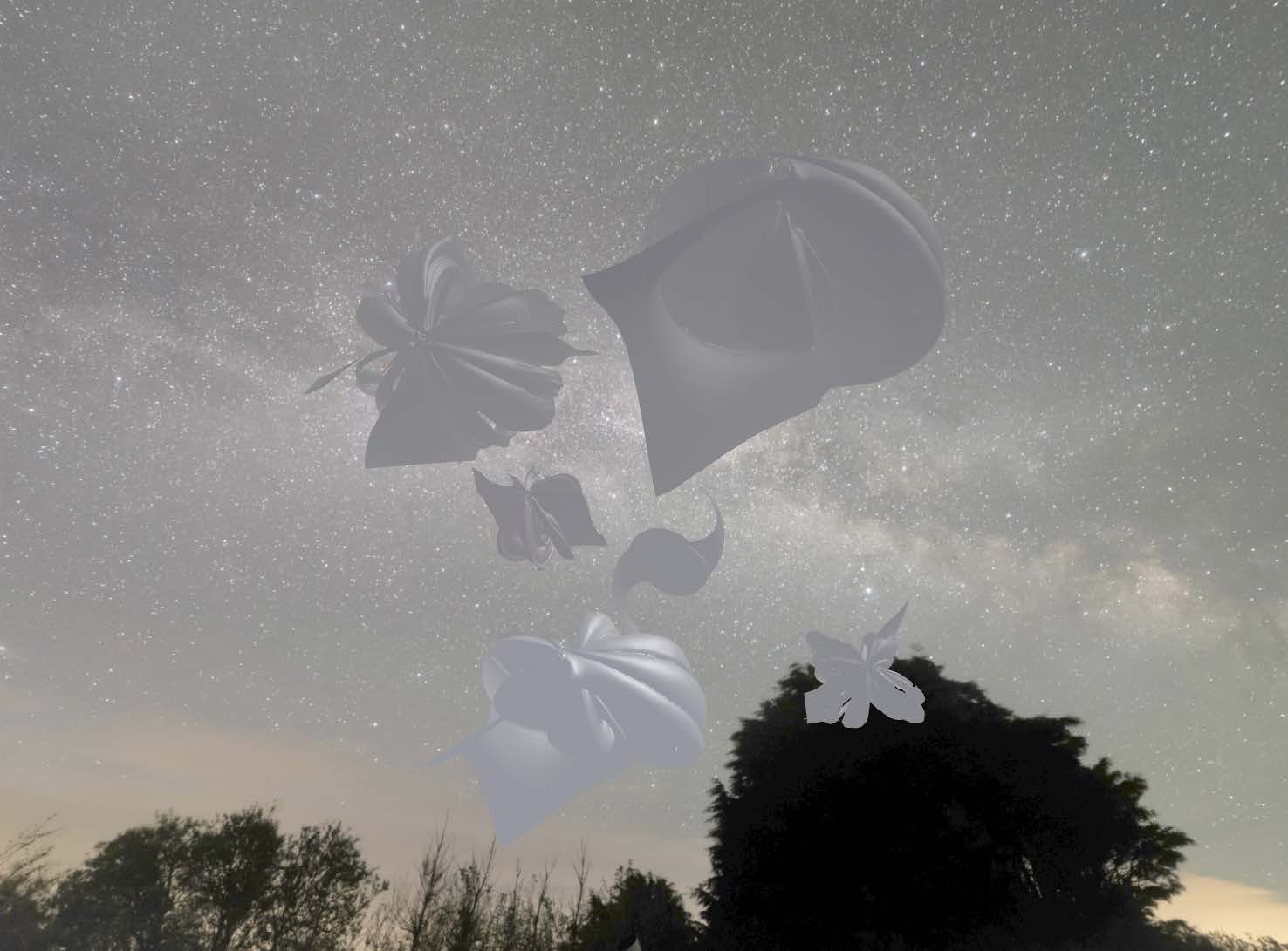 I considered adding more complexity and chaos to the shapes, but didn't like the outcome. The current UFOs look like strange little vessels, maybe like plant seeds even, and I prefer their organic softness. Having a human input and interpretation is also part of the UFO sighting process, after all!